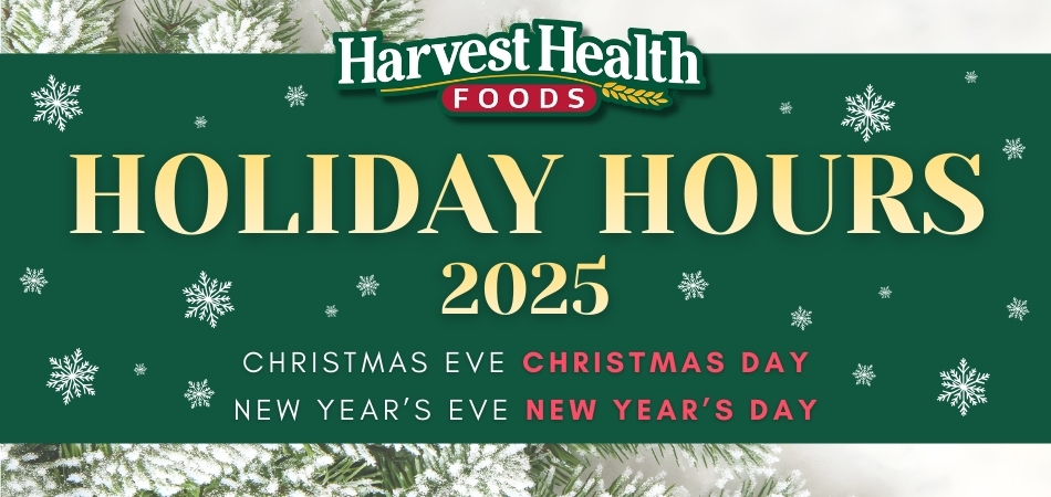 All locations will be open normal hours on both 12/26/2025 and 01/02/2026. Please email info@harvesthealthfoods.com with any questions you may have.